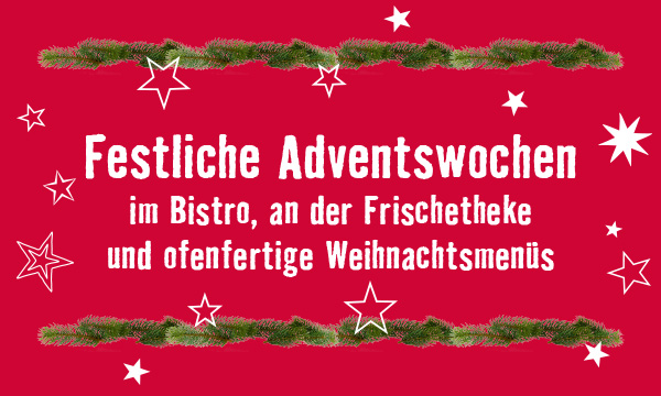 Die Weihnachtszeit rückt näher! Wir haben wieder viele leckere weihnachtliche Adventsessen in unserem Bistro, tolle Angebote in der Frischetheke und besondere Weihnachtsmenüs für die Festtage. Wirf einen Blick in unseren aktuellen Flyer. Vorbestellungen für die Weihnachtsmenüs werden bis zum 17.12.2025 angenommen. ALDAG Weihnachten 2025