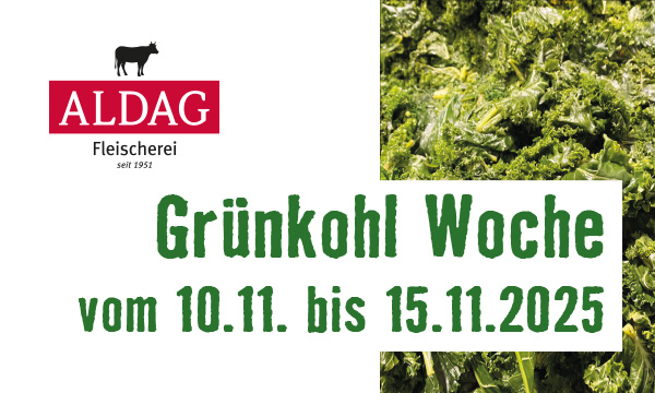 Nach dem großen Zuspruch im vergangenen Jahr gibt es dieses Jahr wieder vom 10. bis 15. November 2025 eine Grünkohl Woche bei uns! Freut euch auf frisch eingekochten Grünkohl in der Frischetheke, leckere besondere Grünkohlgerichte im Bistro und allerlei passende Fleisch- und Wurstwaren zum besonders guten Preis!